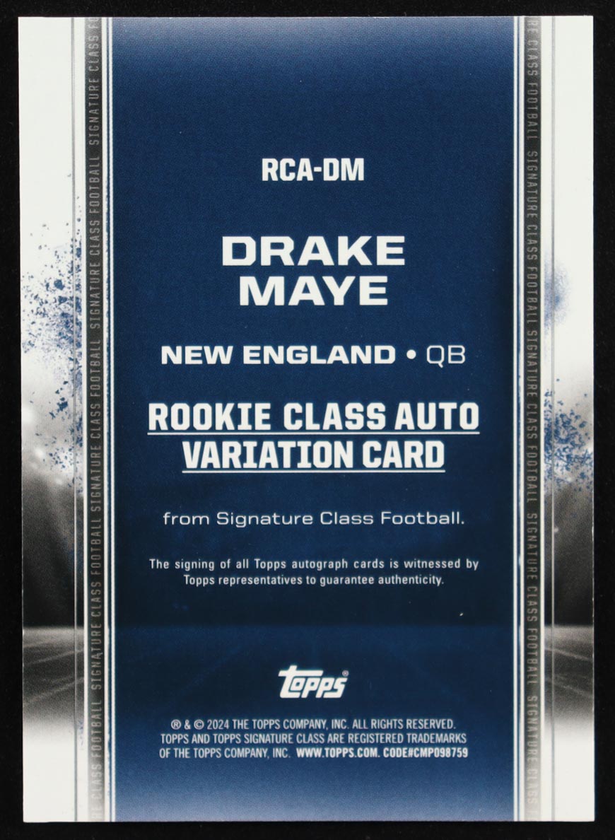 Drake Maye 2024 Topps Signature Class Rookie Autographs #RCA-DM CLASS RC
