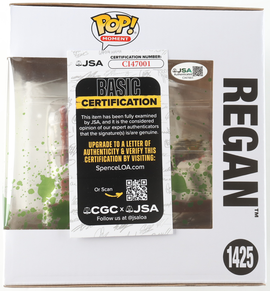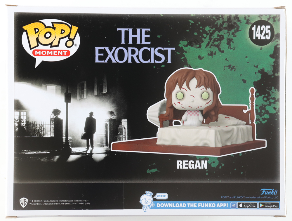 Funko Pop! Moments vinyl figure measures approximately 5" in height and has been hand-signed and inscribed on the packaging by Linda Blair (Regan MacNeil).