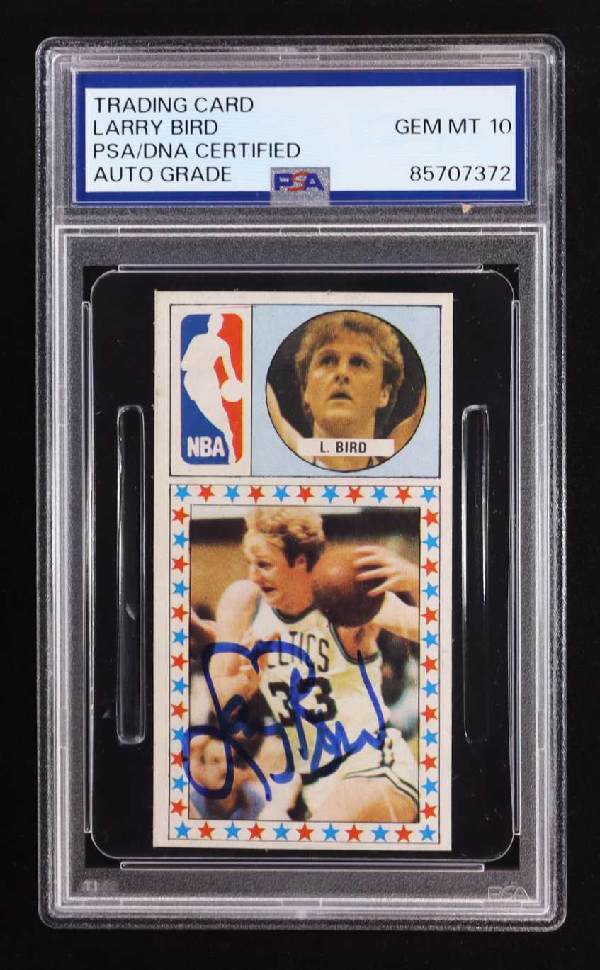 Larry Bird Signed 1986-87 Converse Merchante Spanish Card (PSA | Autograph Grade 10)