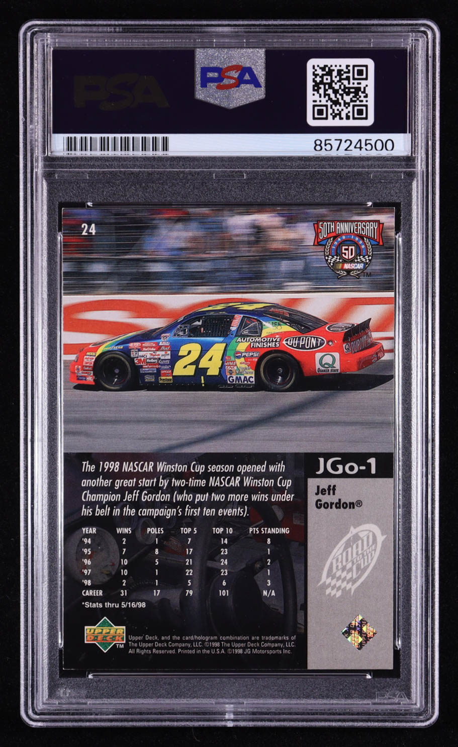 Jeff Gordon Signed 1998 Upper Deck Road To The Cup 50th Nascar Anniversary #24 (PSA)