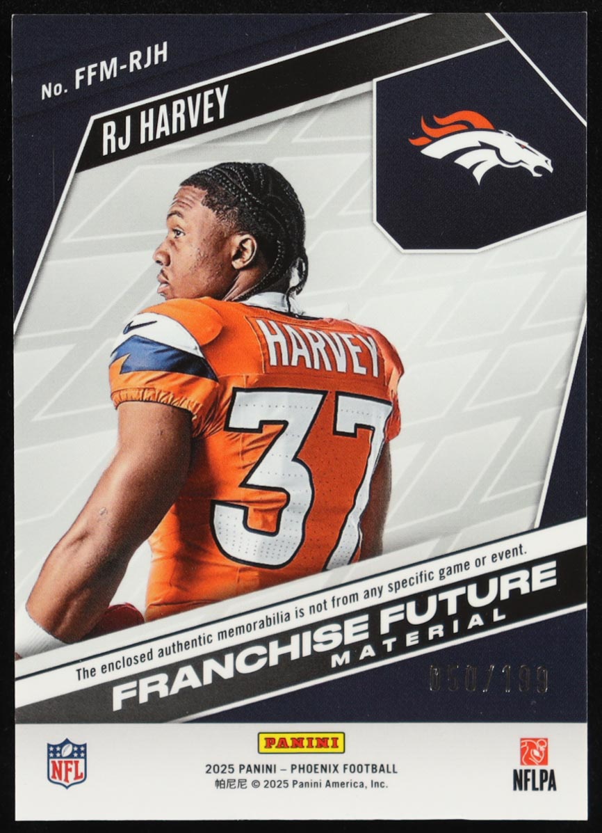 RJ Harvey 2025 Panini Phoenix Franchise Future Material Blue #9 #50/199 RC