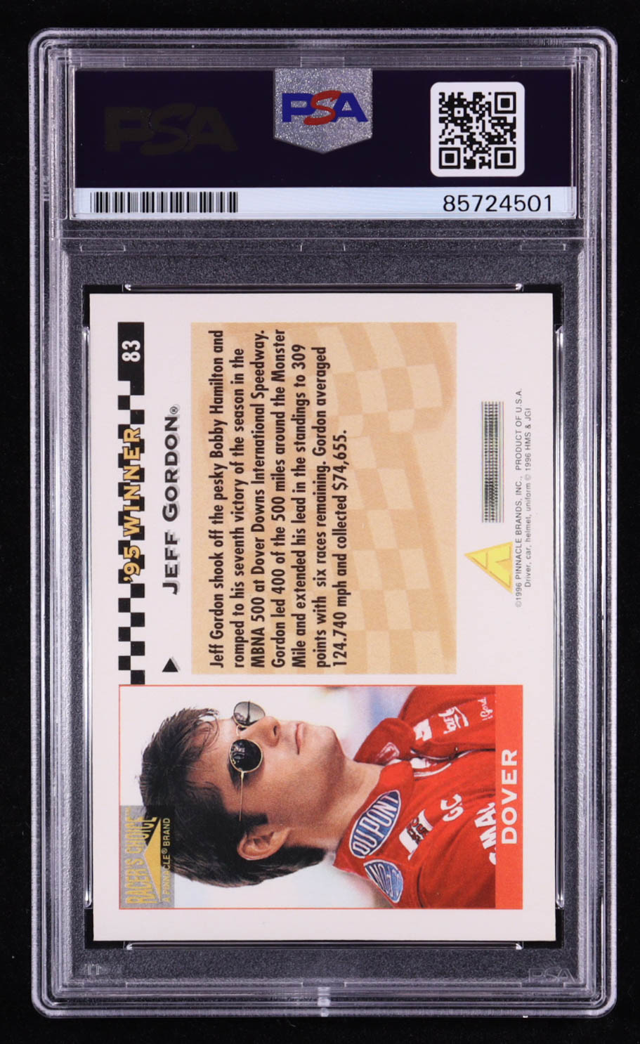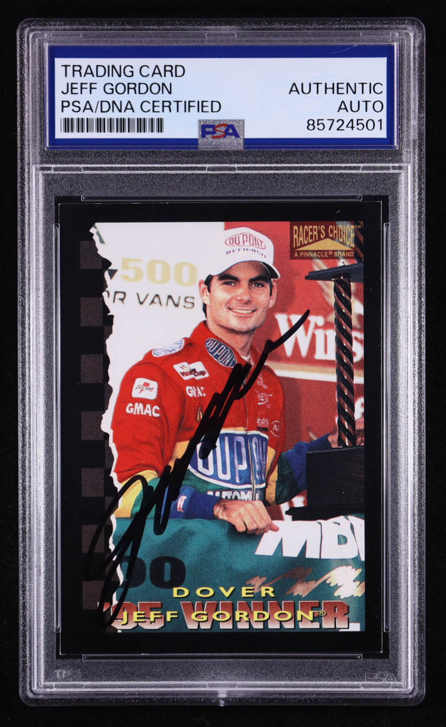 Jeff Gordon Signed 1996 Pinnacle Racer's Choice Dover #83 (PSA)