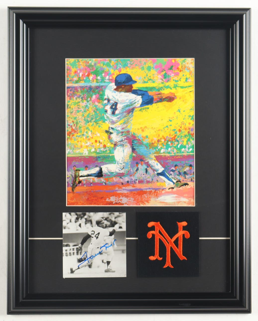 Custom frame measures 14" x 17" in size and features a photo that has been hand-signed by Willie Mays (D. 2024, New York Mets, HOF), as well as a Leroy Neiman (D. 2016) art print and a career statistics plaque.