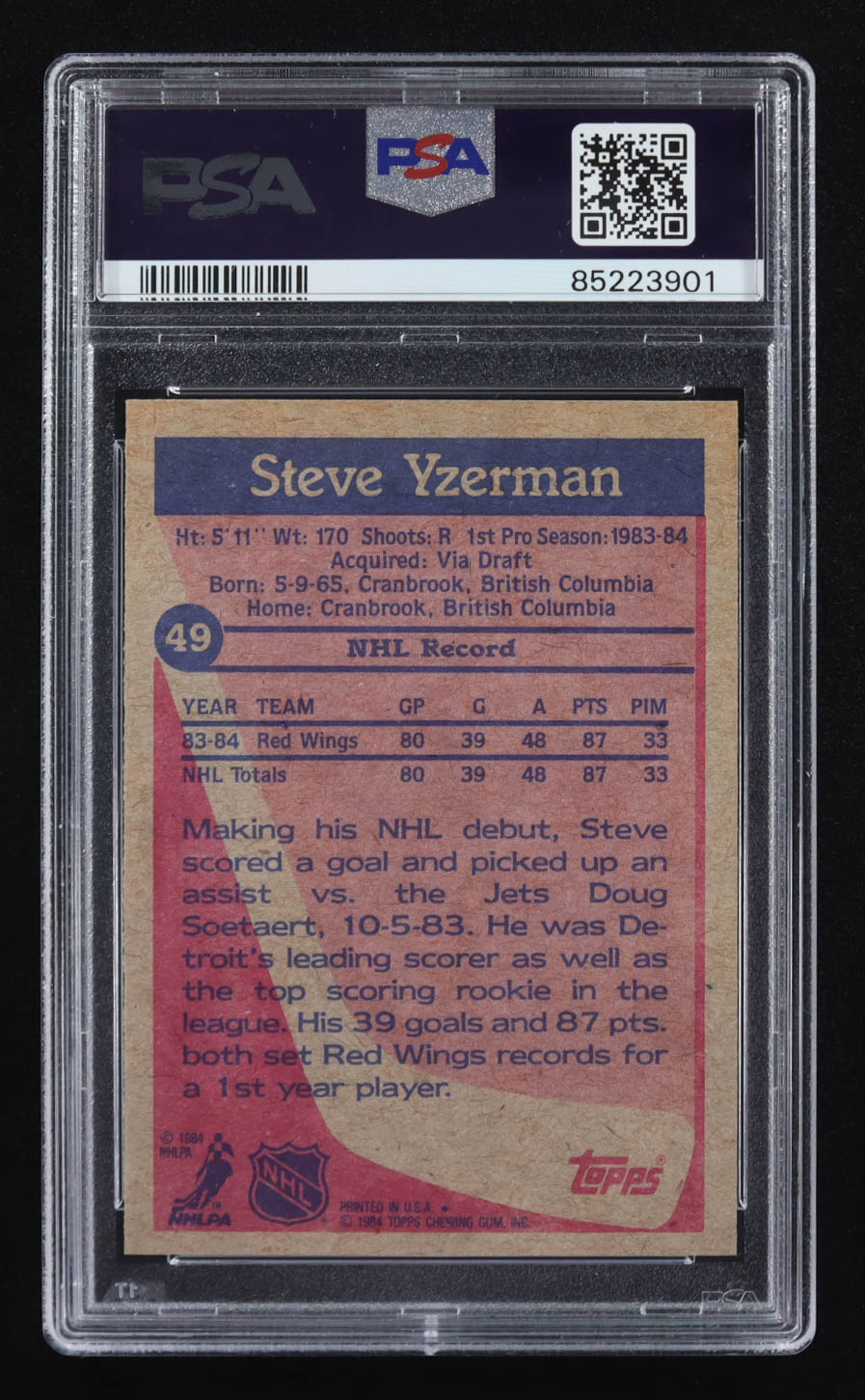 Steve Yzerman 1984-85 Topps #49 RC (PSA 7)