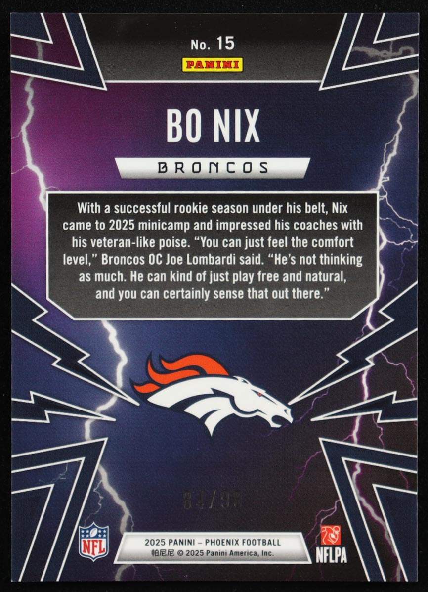 Bo Nix 2025 Panini Phoenix Thunderbirds Green #15 #84/99