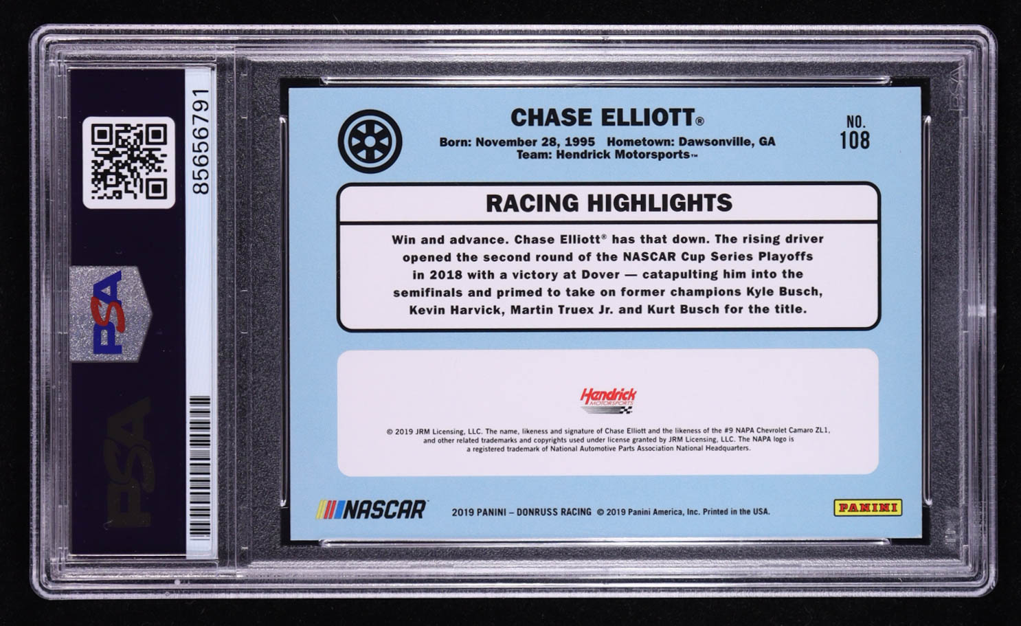 Chase Elliot Signed 2019 Panini Donruss Racing #108 (PSA)