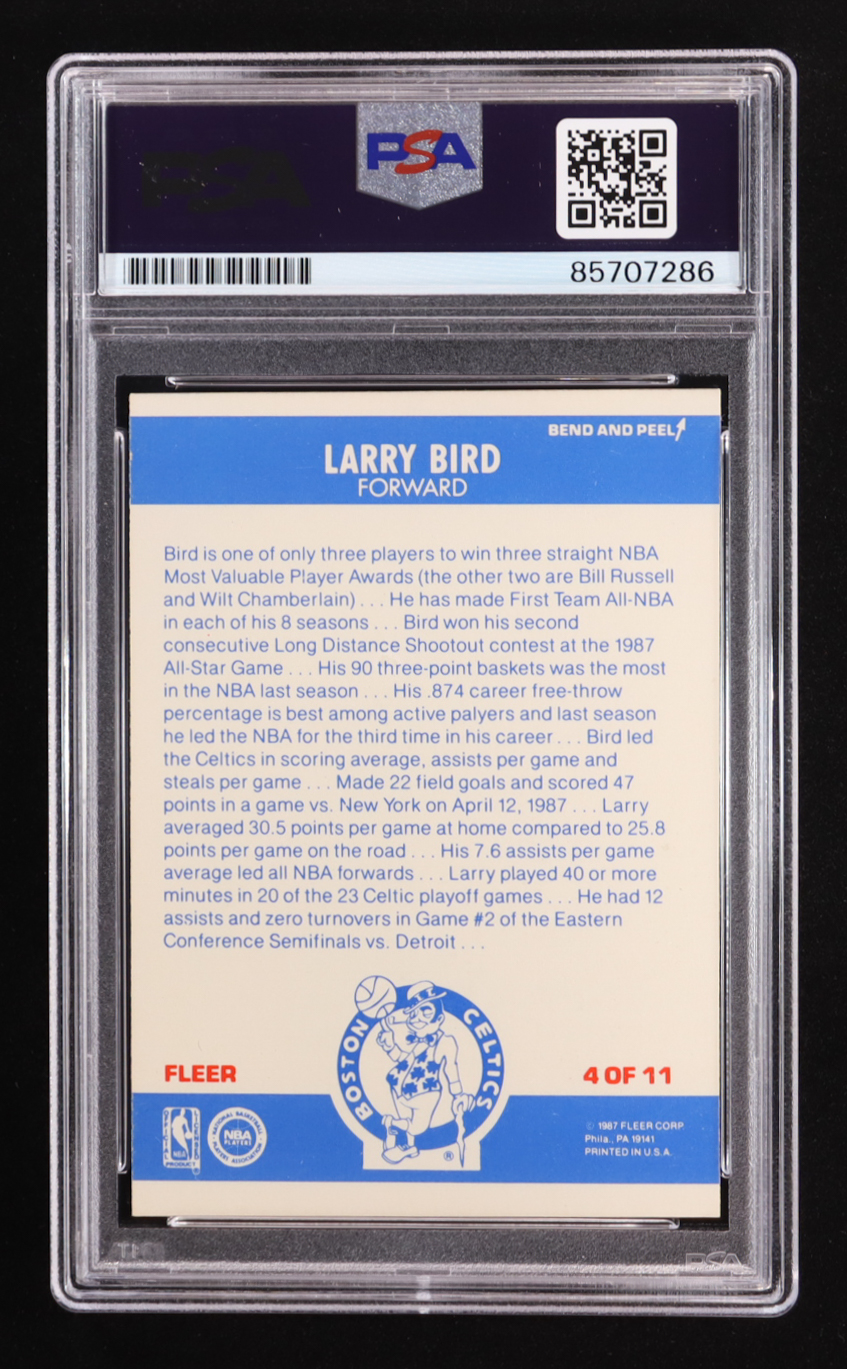 Larry Bird Signed 1987-88 Fleer Sticker #4 (PSA | Autograph Grade 10)