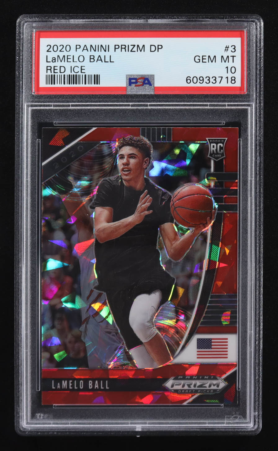 LaMelo Ball 2020-21 Panini Prizm Draft Picks Prizms Red Ice #3 RC (PSA 10)