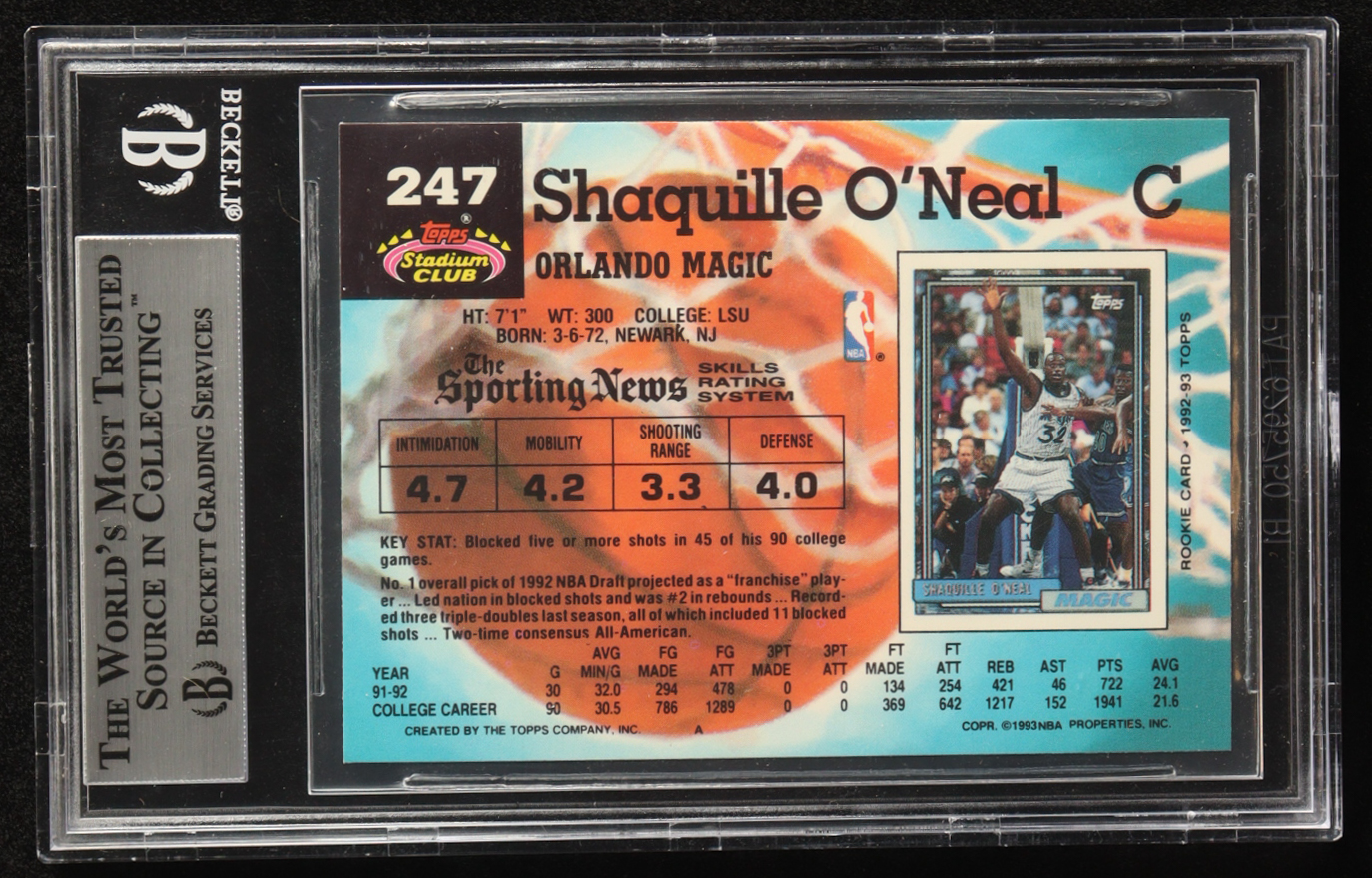 Shaquille O'Neal 1992-93 Stadium Club #247 RC (BGS 9)