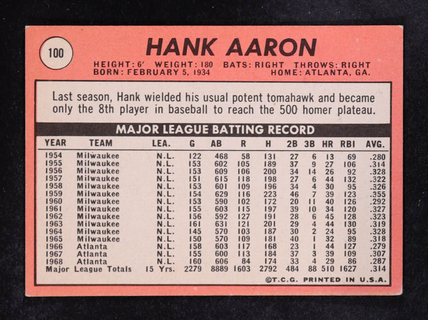 Hank Aaron 1969 Topps #100