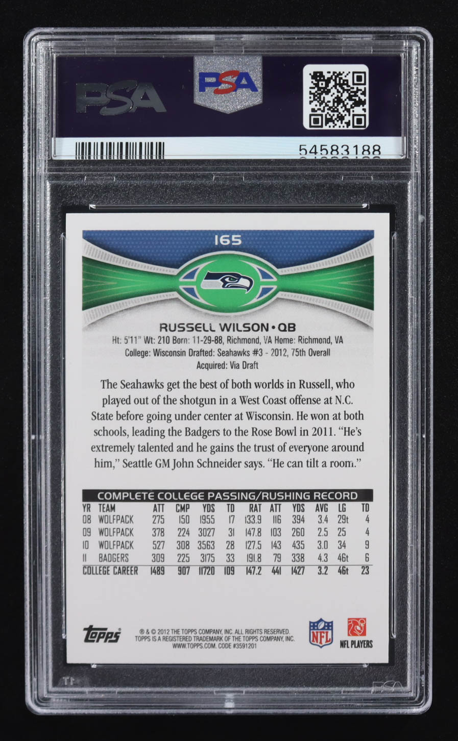 Russell Wilson 2012 Topps #165A RC (PSA 10)