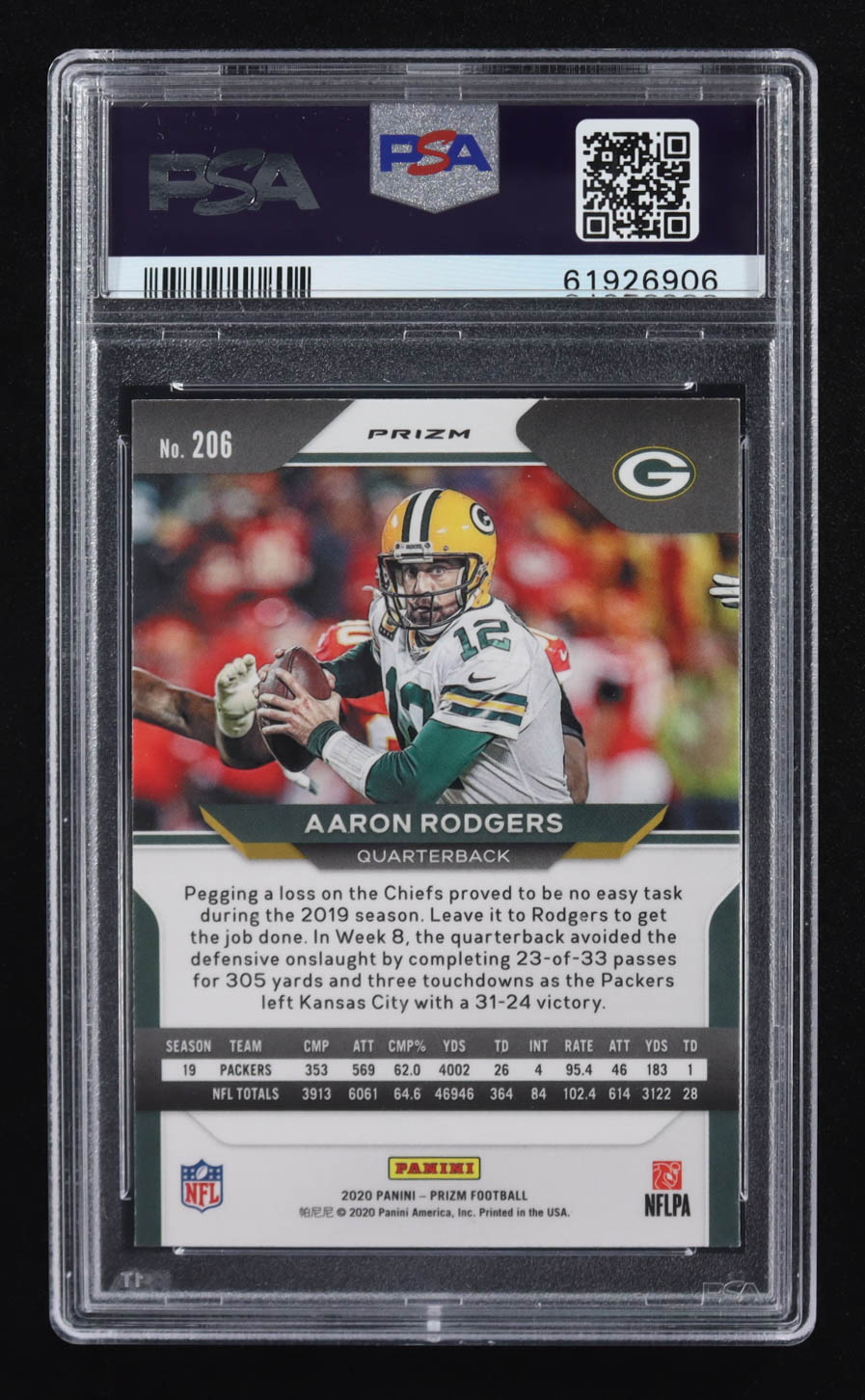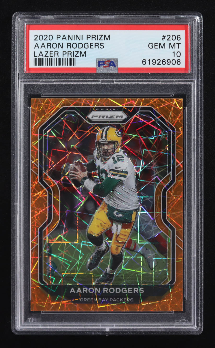 Aaron Rodgers 2020 Panini Prizm Prizms Orange Lazer #206 (PSA 10)