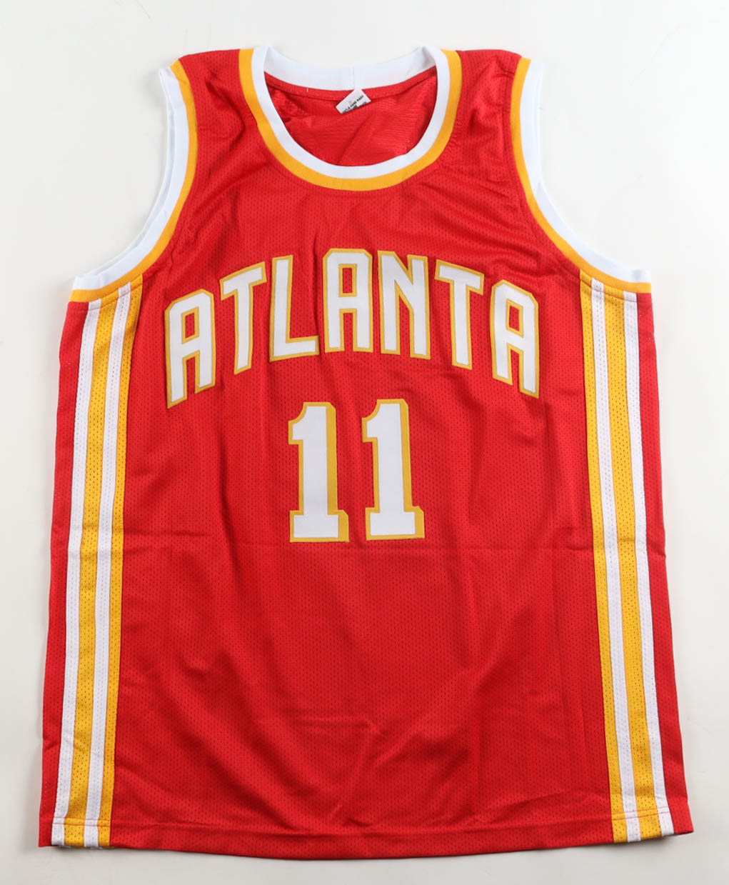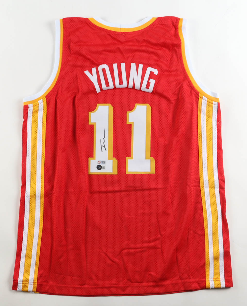 Custom jersey ersey with everything sewn on, size XL. Hand-signed by Trae Young.