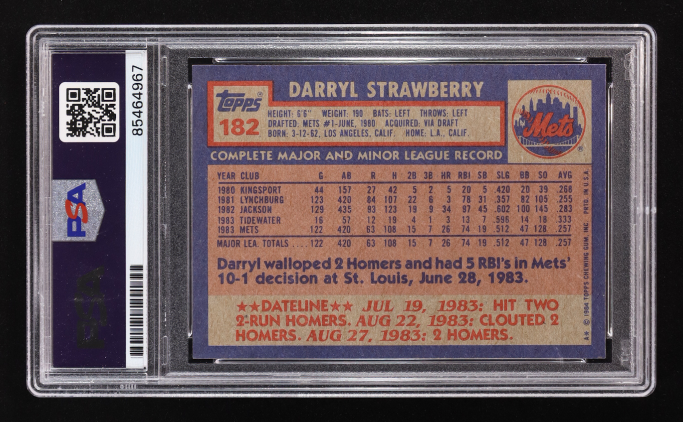 Darryl Strawberry Signed 1984 Topps Inscribed "86 WS Champs" #182 RC (PSA | Autograph Graded PSA 10)