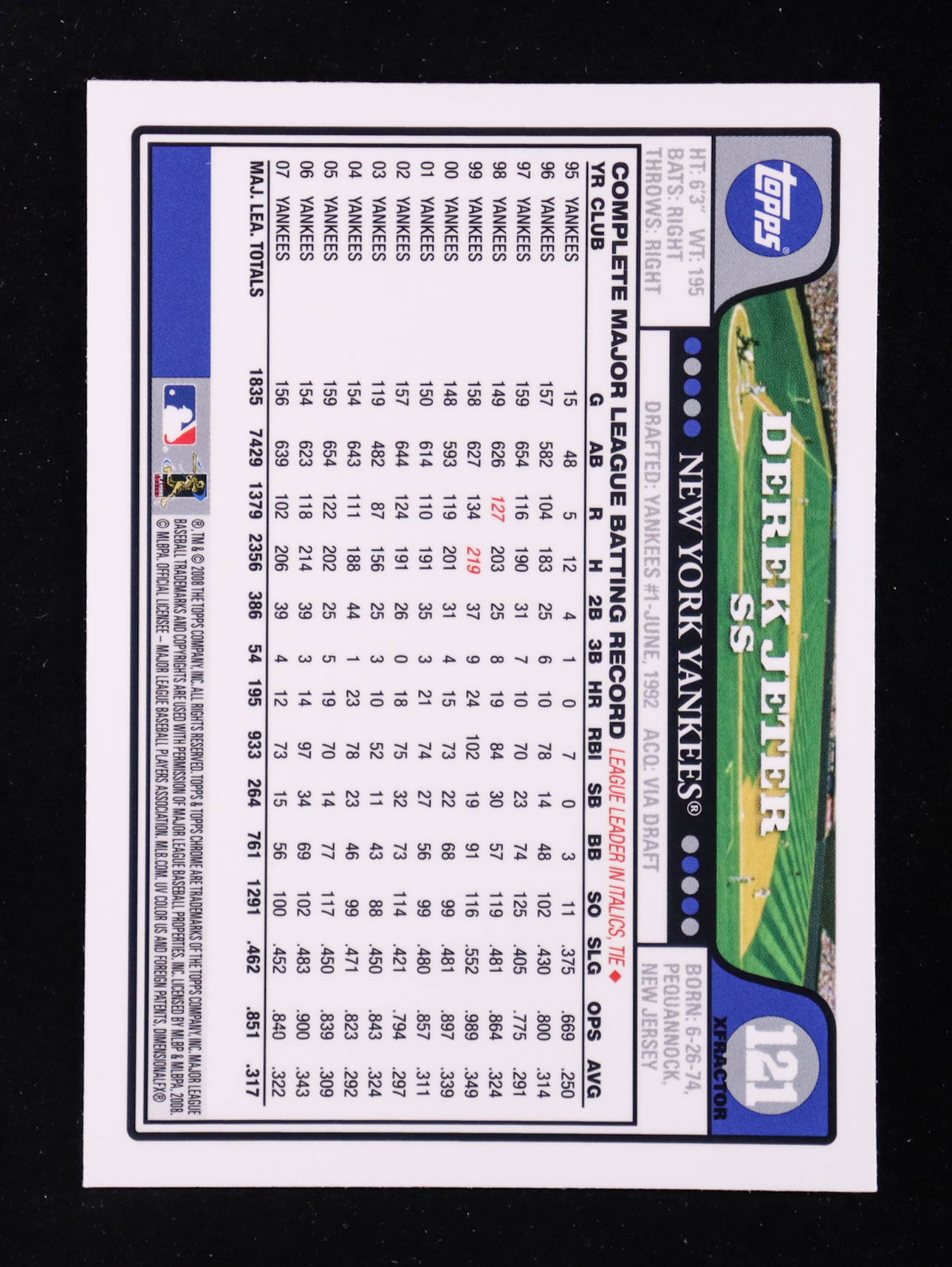 Derek Jeter 2008 Topps Chrome X-Fractors #121