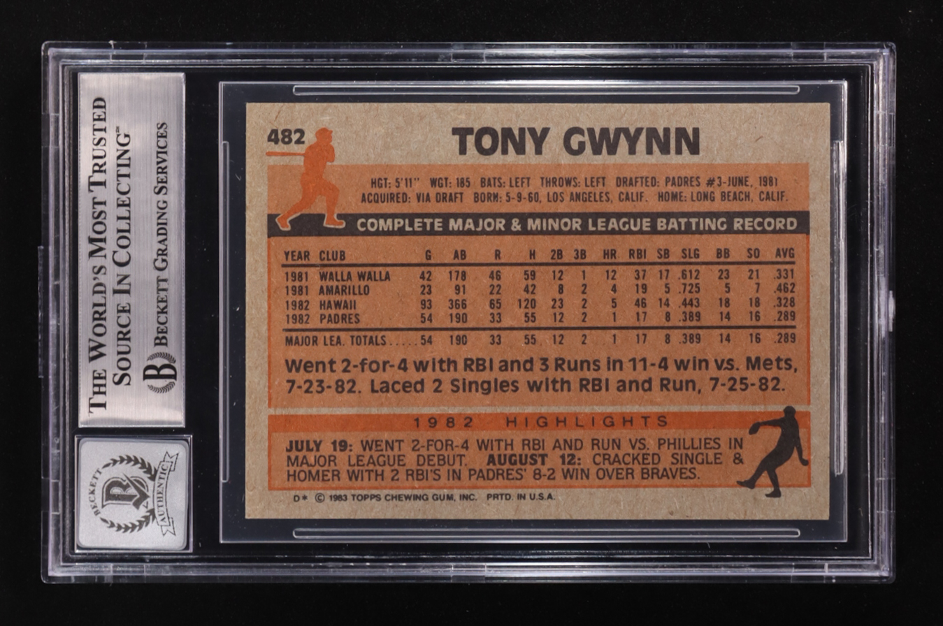 Tony Gwynn Signed 1983 Topps #482 (BGS | Auto 10)