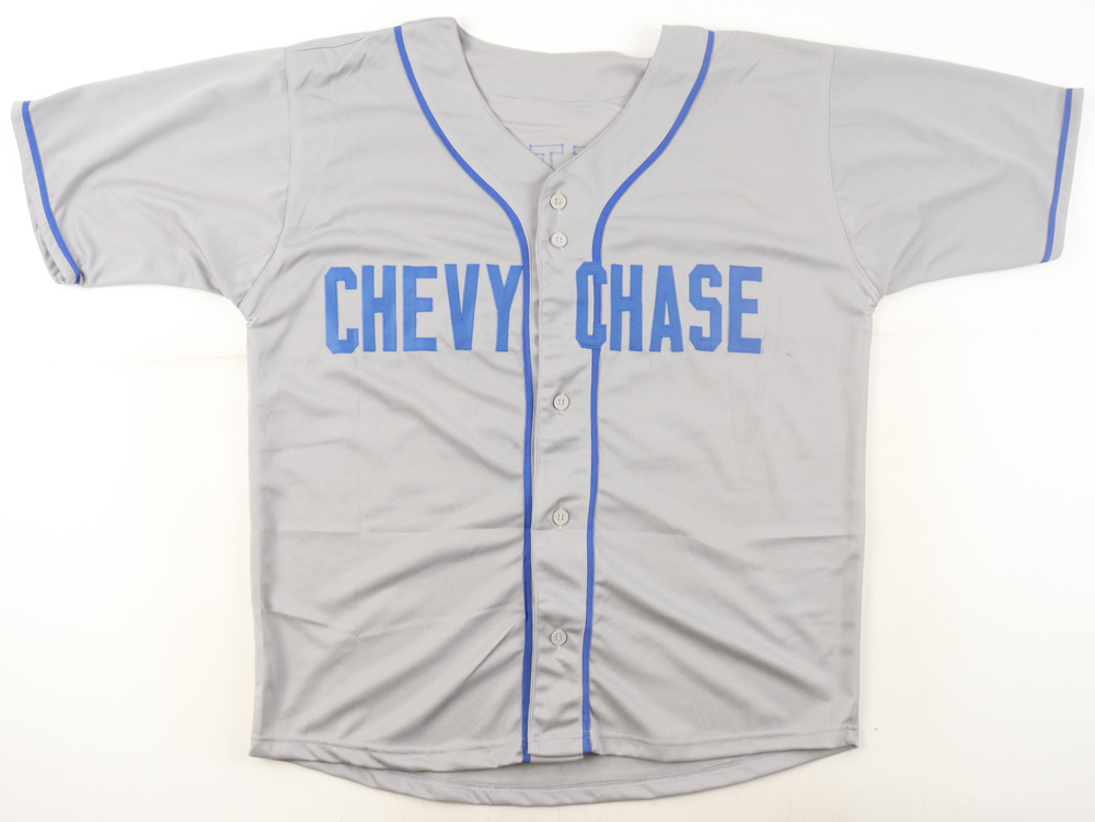 Custom jersey. Everything is sewn on, size XL. Hand-signed by Chevy Chase (Irwin M. Fletcher).