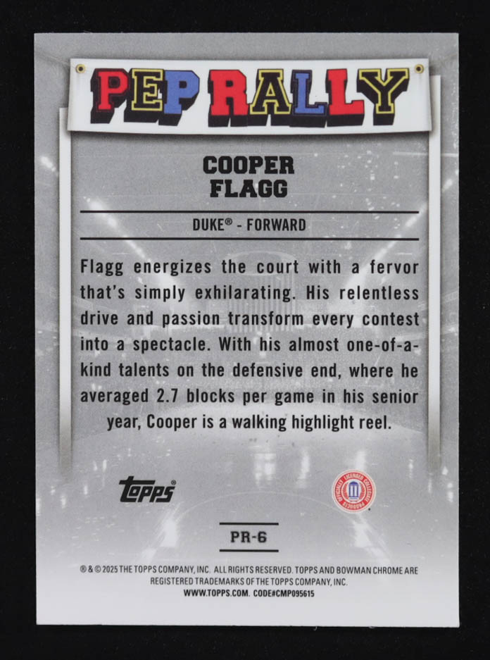 Cooper Flagg 2024-25 Bowman Chrome University Pep Rally X-Fractors #PR6 RC