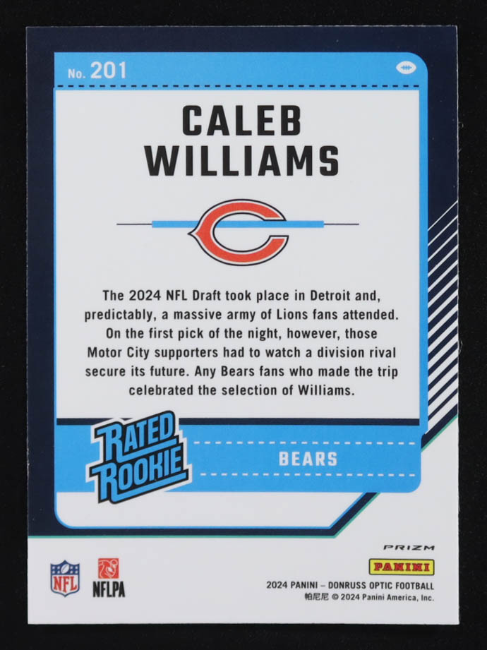 Caleb Williams 2024 Donruss Optic Purple Shock #201 RR RC
