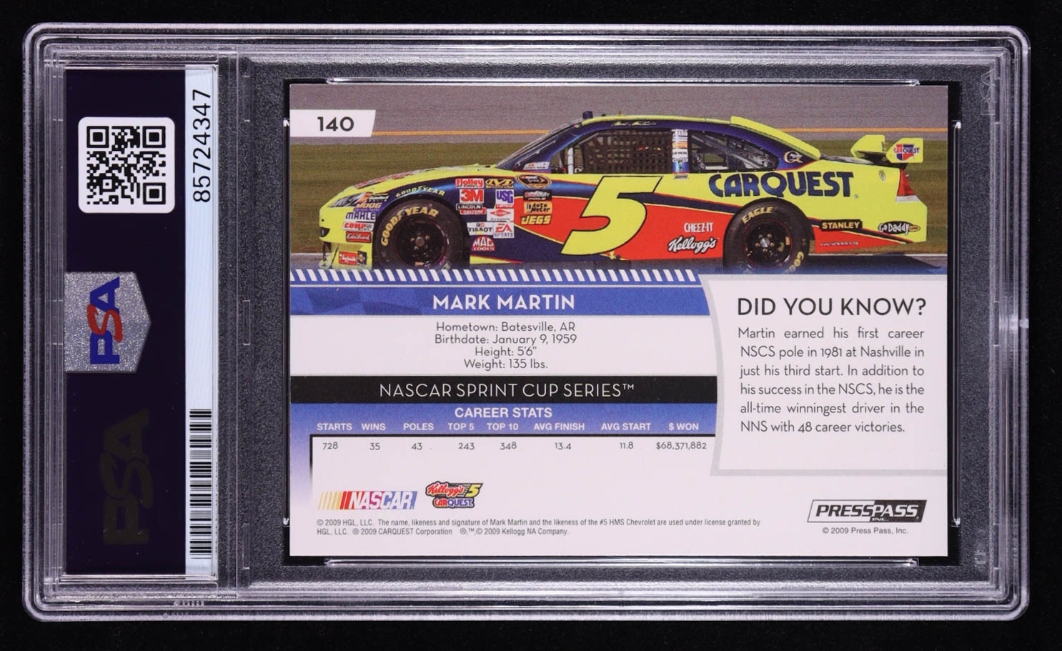 Mark Martin Signed 2009 Press Pass #140 (PSA)