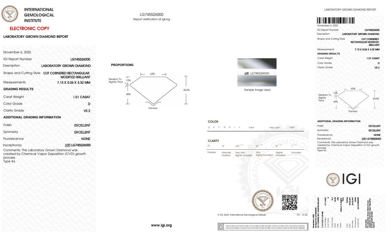 1.01 Carats Lab Grown Diamond Loose D, VS2 | (IGI Cert)