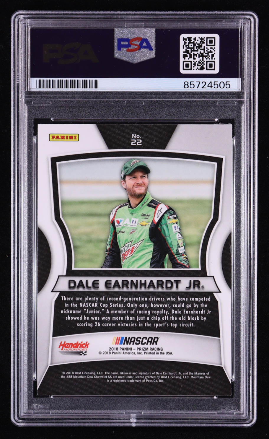 Dale Earnhardt Jr. Signed 2018 Panini Prizm Racing #22 (PSA)