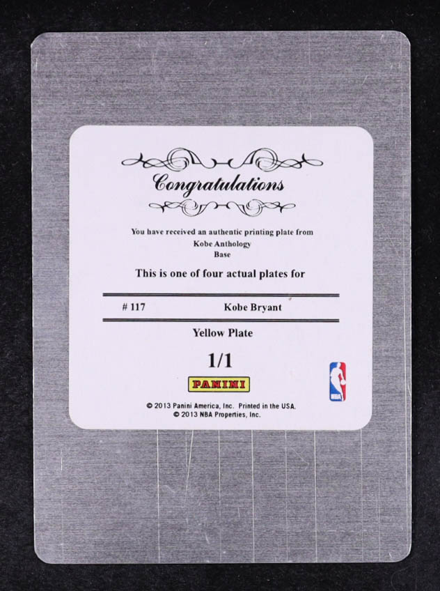 Kobe Bryant 2013 Panini Kobe Anthology Yellow Printing Plate #117 #1/1
