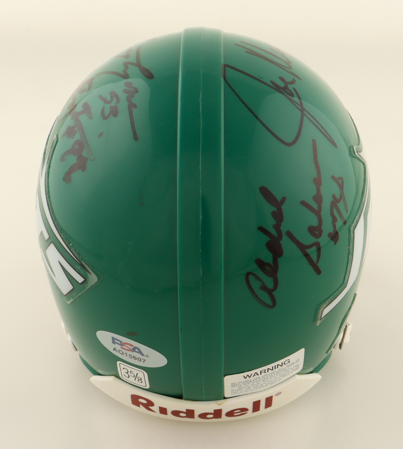 Riddell New York Jets mini helmet. Hand-signed by (4) with Mark Gastineau, Joe Klecko, Marty Lyons and Abdul Salaam.