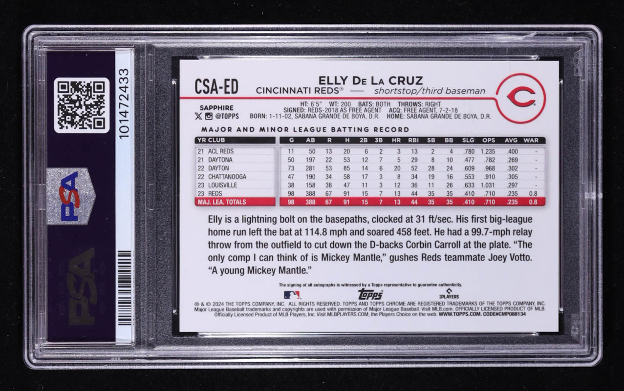 Elly De La Cruz 2024 Topps Chrome Sapphire Autographs Green Refractors #CSAED #41/99 RC (PSA 10)