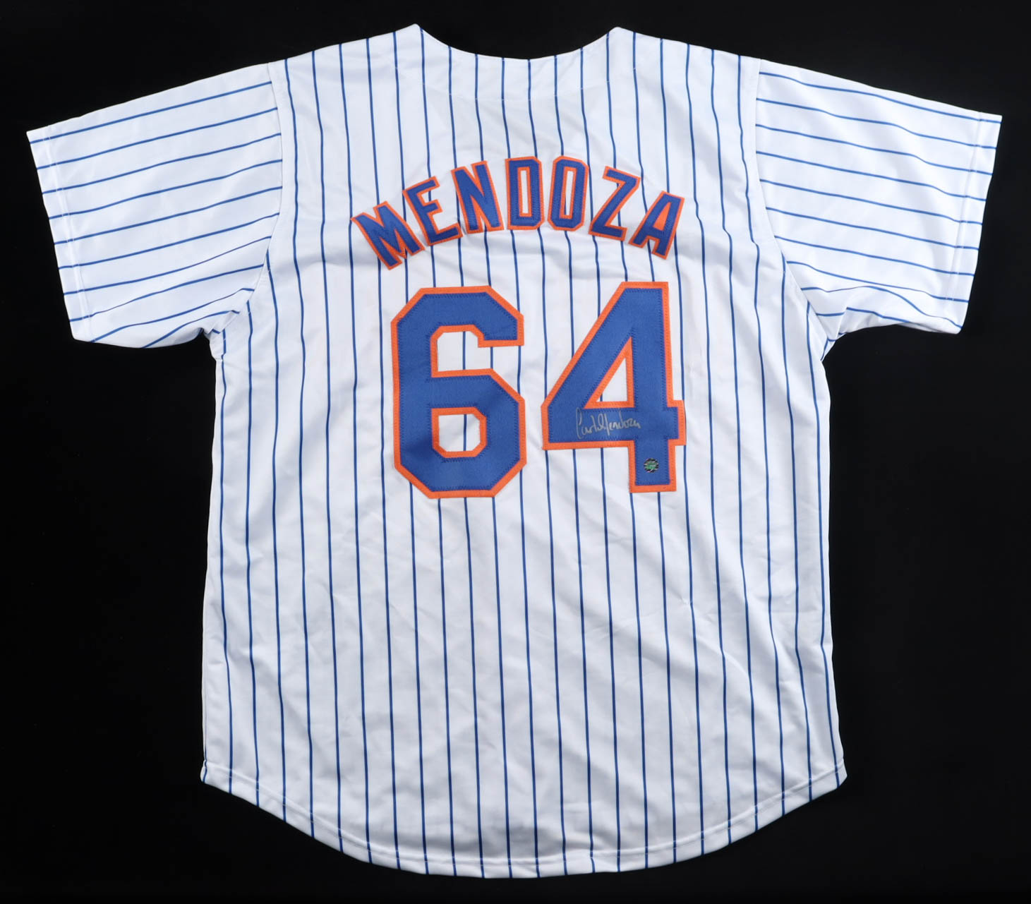 Custom jersey. Everything is sewn on, size XL. Has been hand-signed by Carlos Mendoza