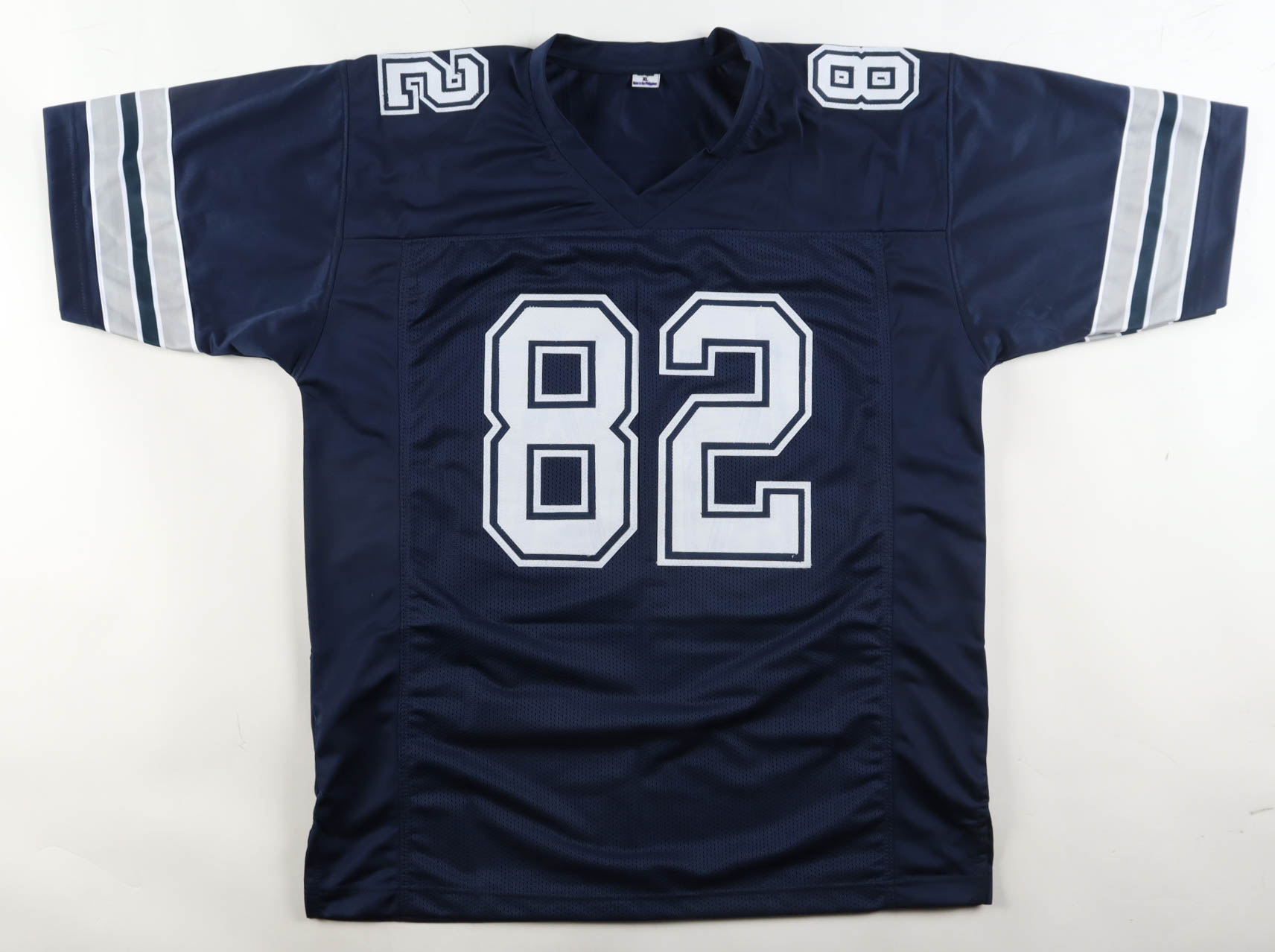 Custom jersey with everything sewn on size XL. Hand-signed and inscribed by Mike Renfro (HOF). Please note, glue is visible through the reverse number. See photos regarding the condition of the item.