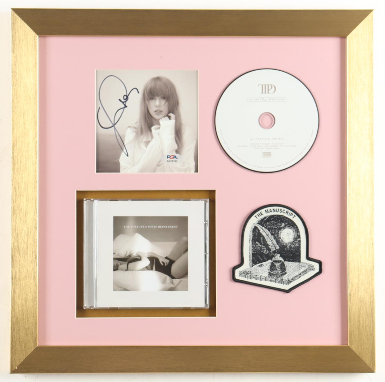 Taylor Swift Signed Custom Framed "The Tortured Poets Department" CD Album Insert Display with CD Case, CD & The Manuscript Patch (PSA)