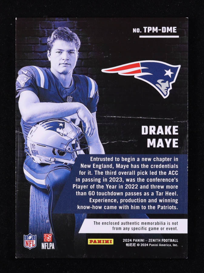 Drake Maye 2024 Zenith Turning Pro Memorabilia #3 RC