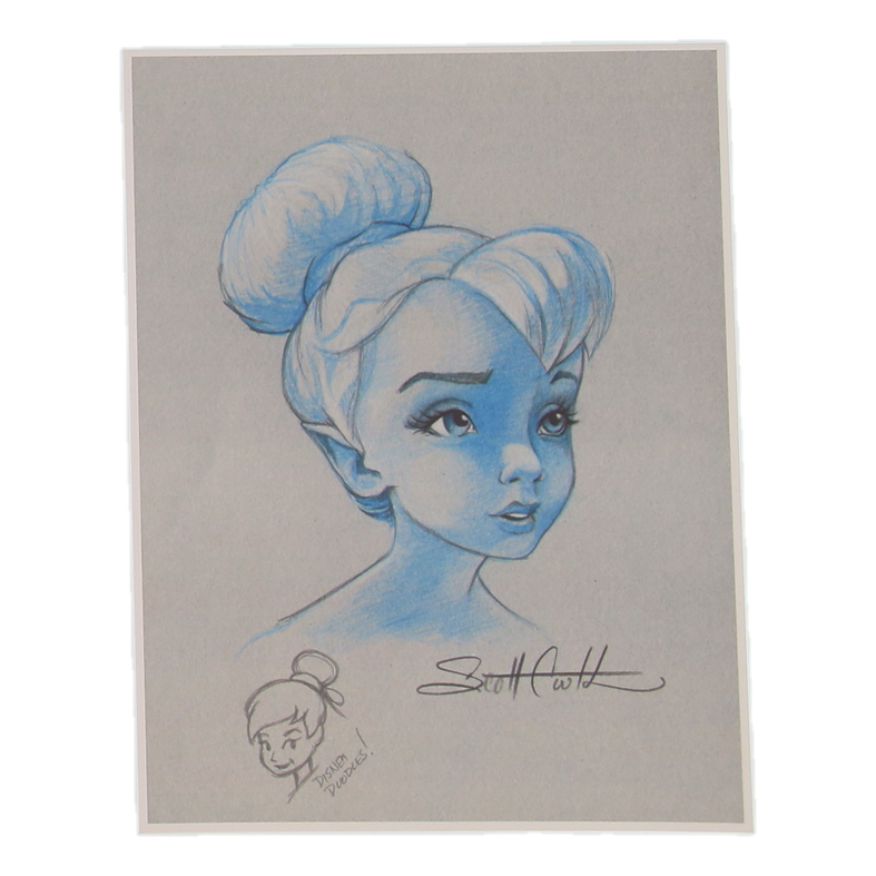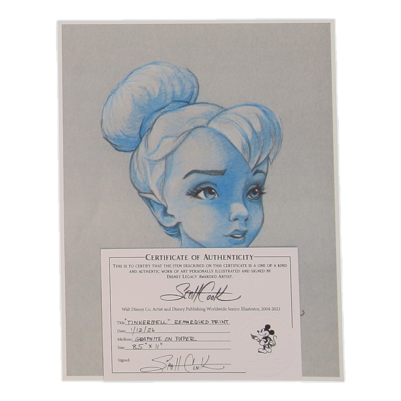 This original sketch using graphite and colored pencil includes original art which measures 8.5" x 11" by award winning Walt Disney artist, Scott Cook. The photo is hand-signed along with a character name inscription by the artist.