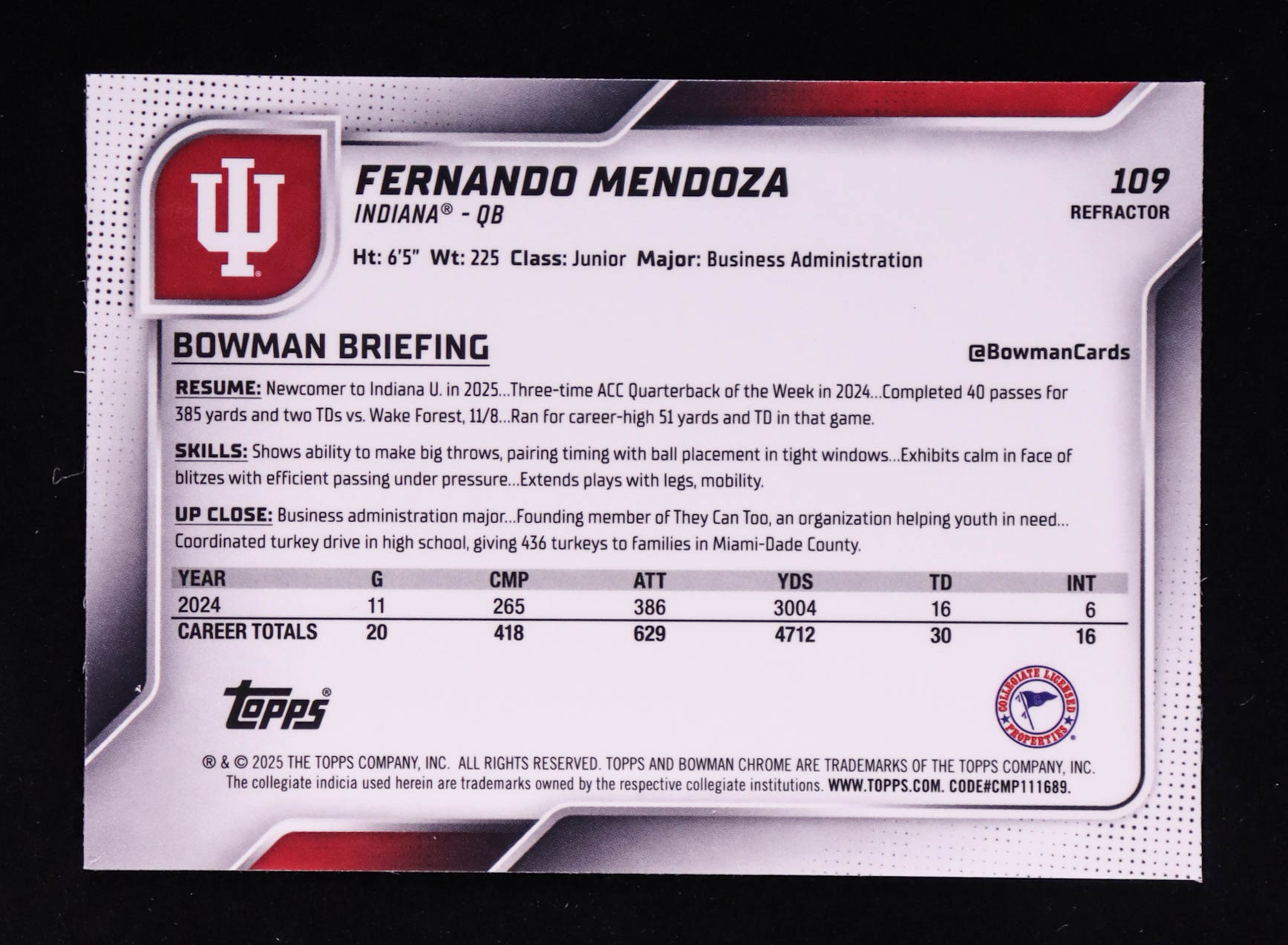 Fernando Mendoza 2025 Bowman Chrome University Refractors #109 RC