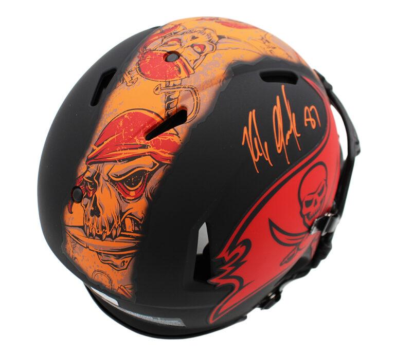 Riddell Tampa Bay Buccaneers full-size authentic on-field eclipse alternate ripped speed helmet. Hand-signed by Rob Gronkowski.