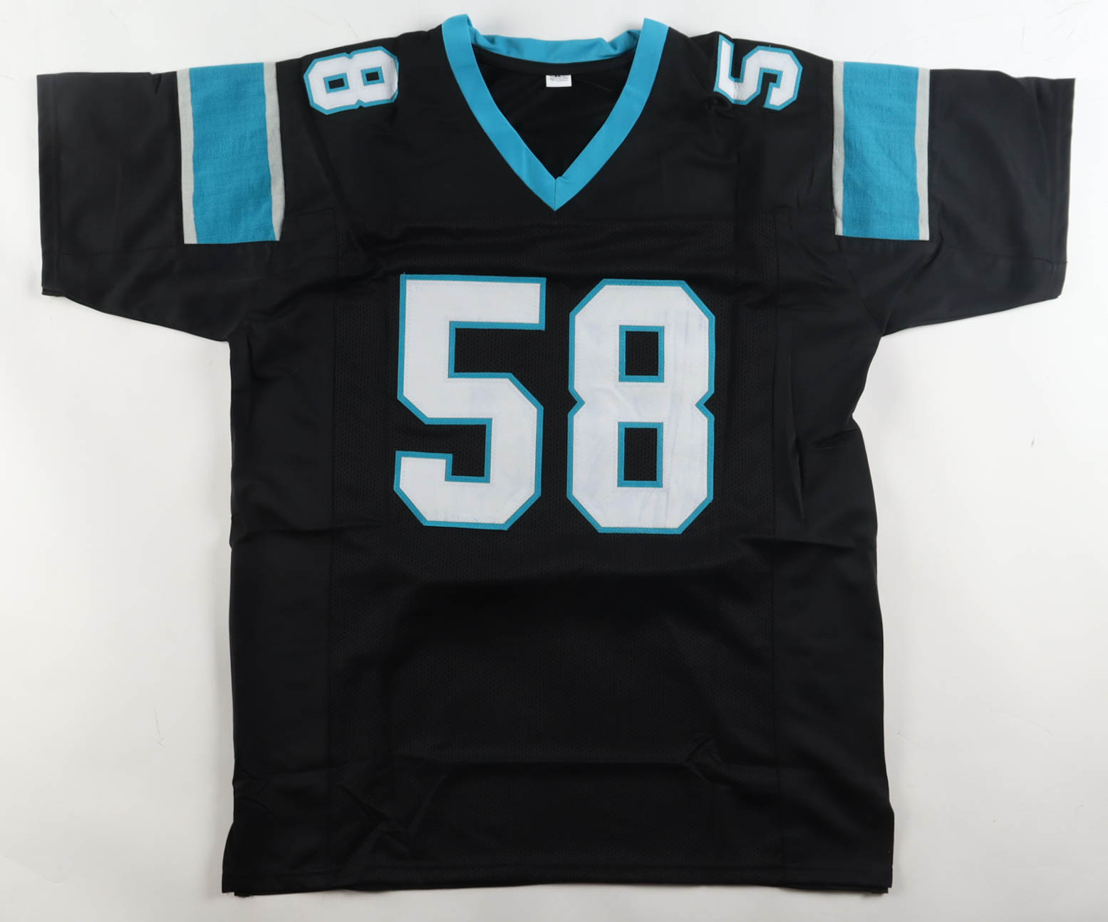 Custom jersey with everything sewn on, size XL. Hand-signed by Thomas Davis Sr.