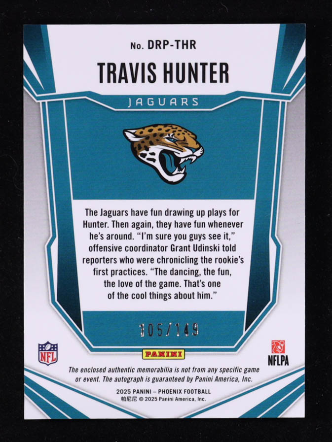 Travis Hunter 2025 Panini Phoenix Dual Rookie Patch Autographs Silver #4 #104/149 RC