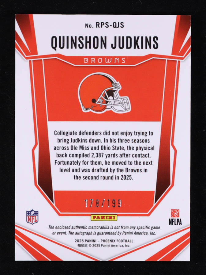 Quinshon Judkins 2025 Panini Phoenix Rookie Patch Autographs Bronze Pandora #5 #176/199 RC