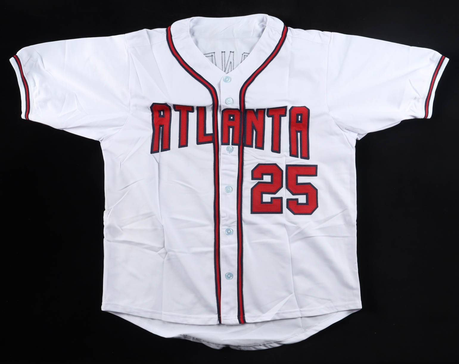 Custom jersey with everything sewn on, size XL. Hand-signed by Andruw Jones (HOF).