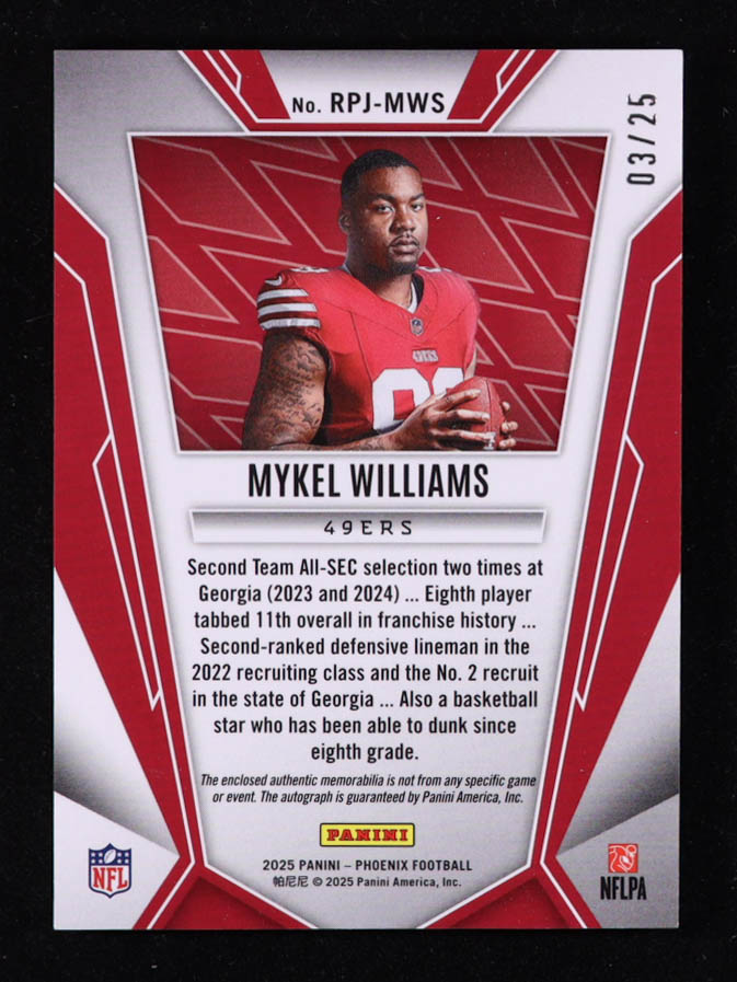 Mykel Williams 2025 Panini Phoenix Rookie Phenoms Jersey Autographs ColorBurst #37 #03/25 RC