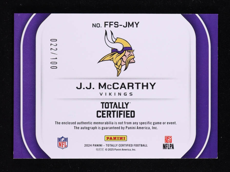 JJ McCarthy 2024 Totally Certified Freshman Fabric Signatures Mirror Red #1 #022/100 RC