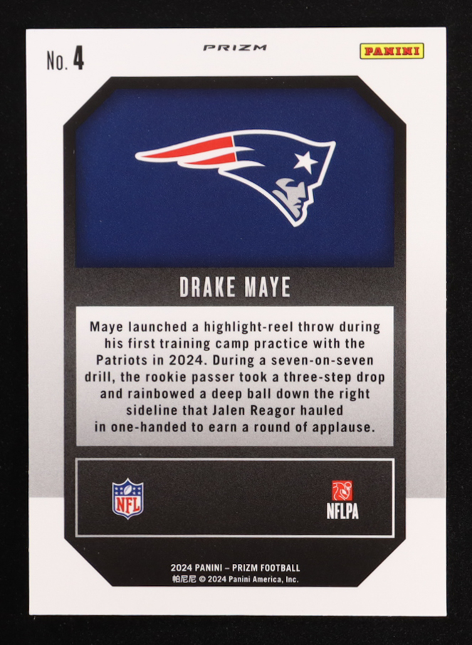 Drake Maye 2024 Panini Prizm Emergent Prizms Green Wave #4 RC