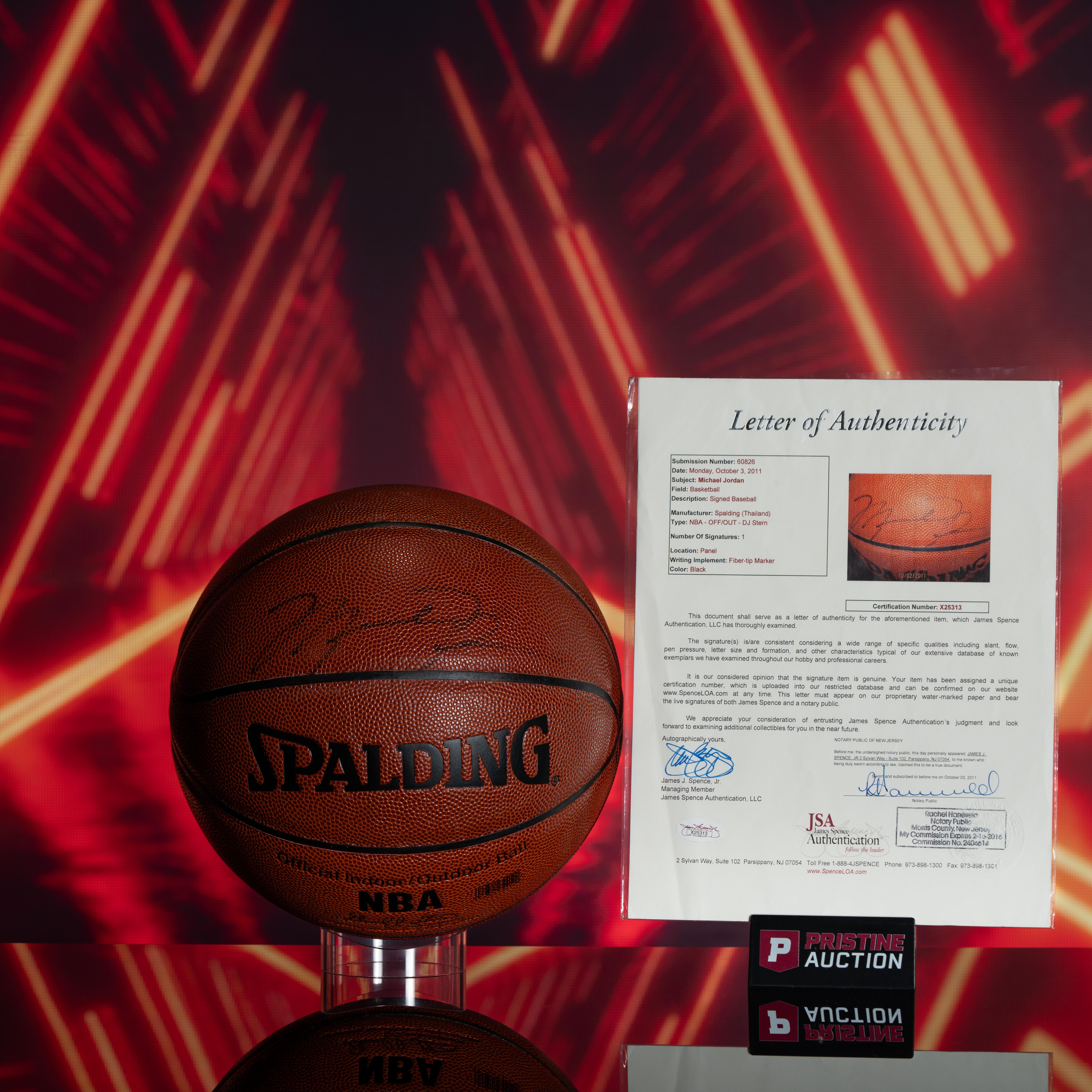 The basketball includes an official James Spence Authentication (JSA) hologram and matching LOA for authenticity purposes.
