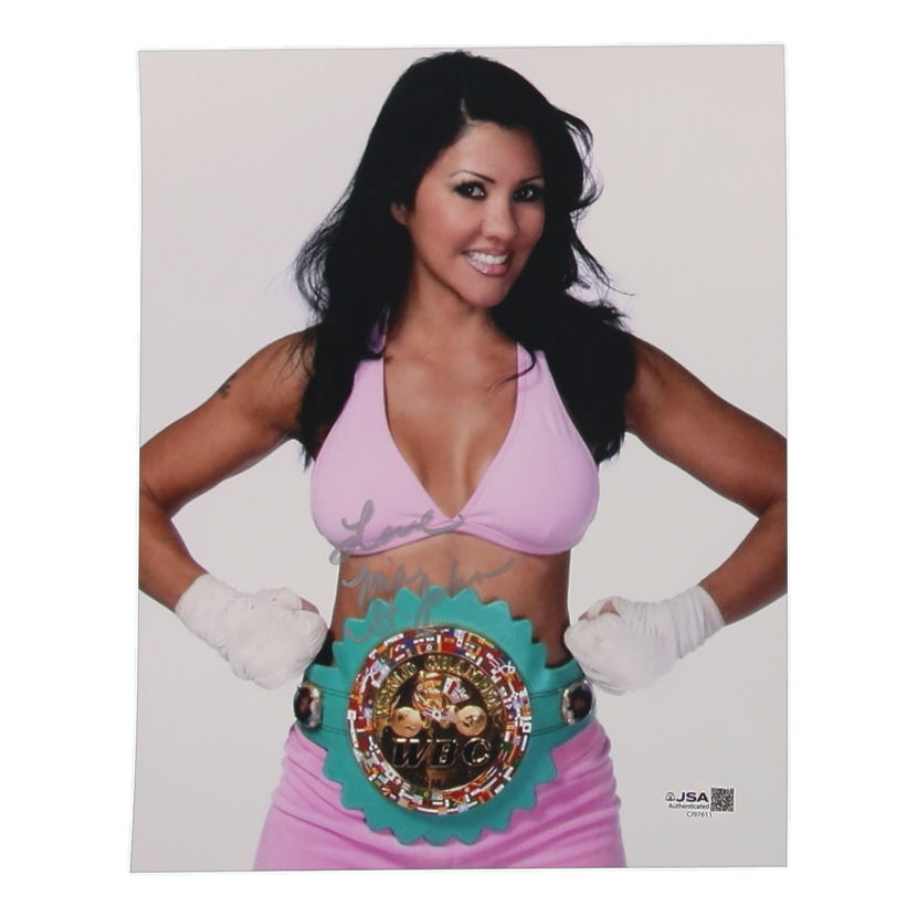 Photo measures 8" x 10" in size and has been hand-signed by Mia St. John.