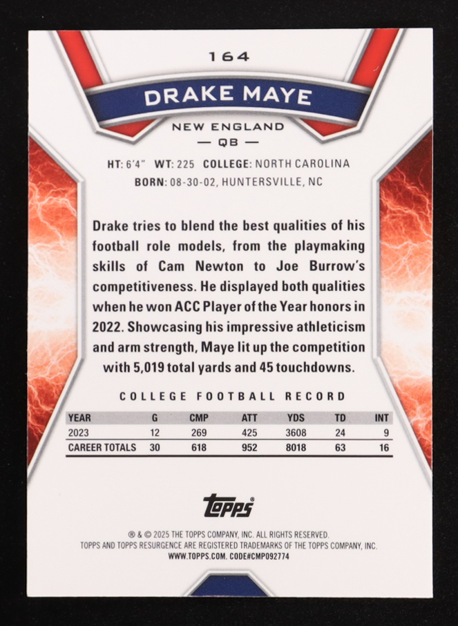 Drake Maye 2024 Topps Resurgence Hyper Prism #164 RC