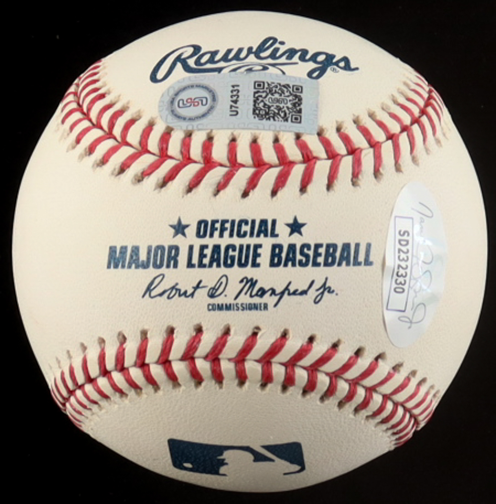 The autograph(s) includes an official James Spence Authentication (JSA) "Signature Debut" hologram. "Signature Debut" is the autographed memorabilia equivalent to a rookie card. The JSA definition of a "Signature Debut" is as follows: "Any item that is autographed and received by JSA prior to the last game of the signer's official rookie season.