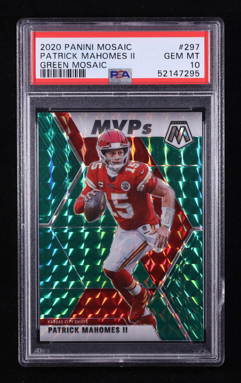 Patrick Mahomes II 2020 Panini Mosaic Mosaic Green #297 MVP (PSA 10)