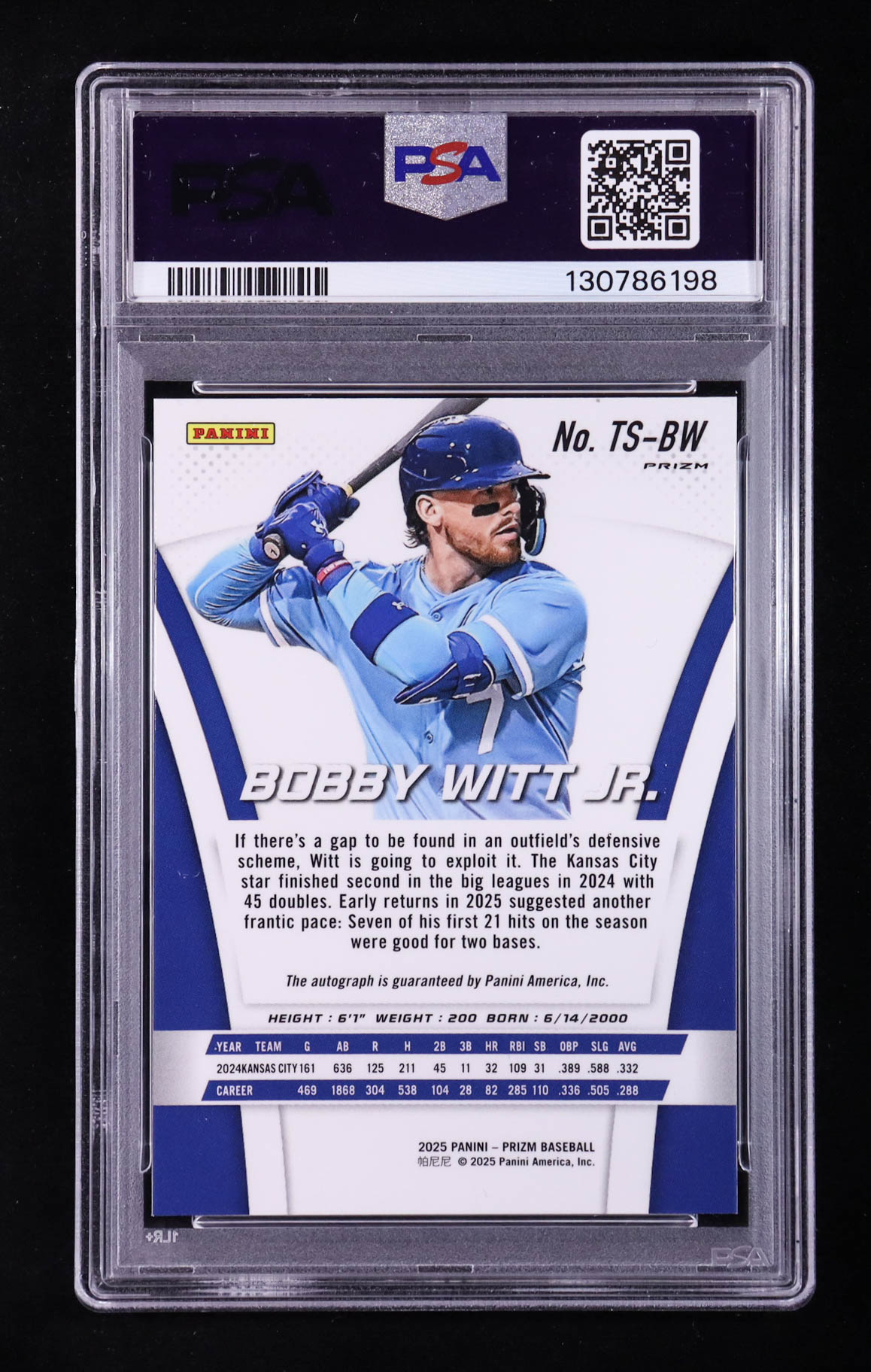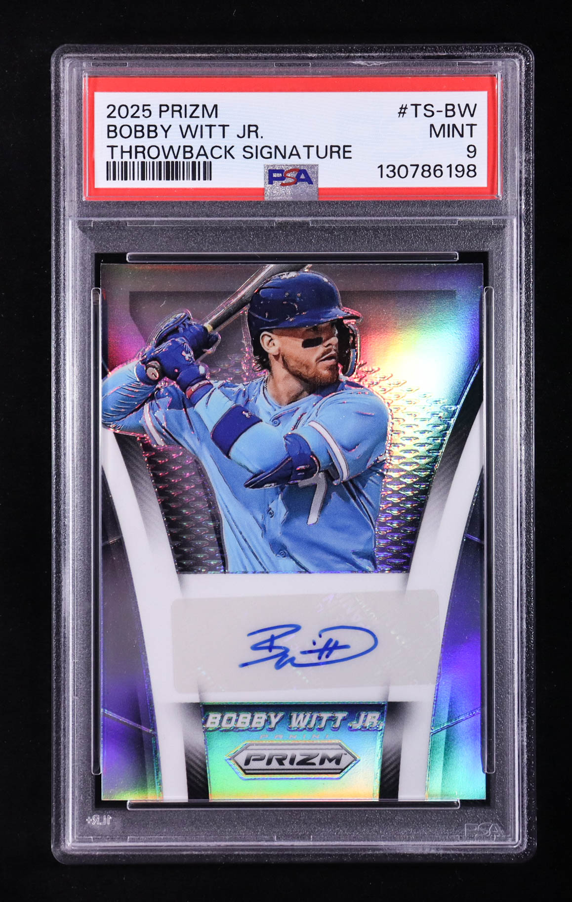 Bobby Witt Jr. 2025 Panini Prizm Throwback Signatures #10 (PSA 9)