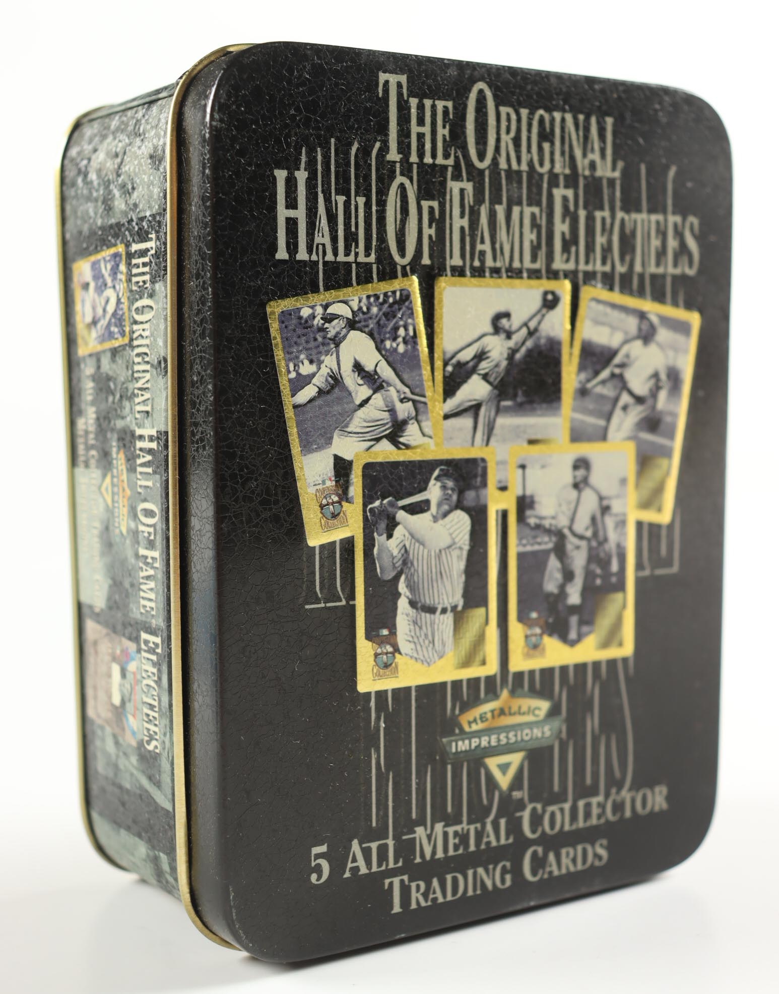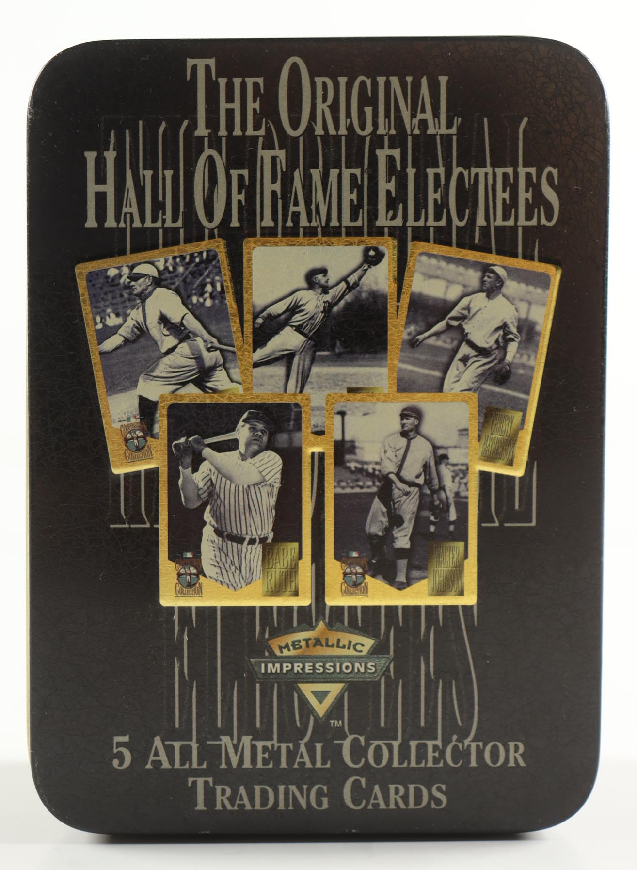 The Original Hall Of Fame Electees Metallic Impressions Cards in Original Tin with Babe Ruth, Ty Cobb, Walter Johnson